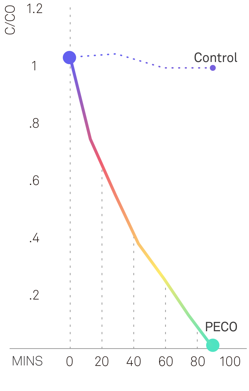 PECOテクノロジーは さまざまな物質の除去について多くのテストを実施しています。